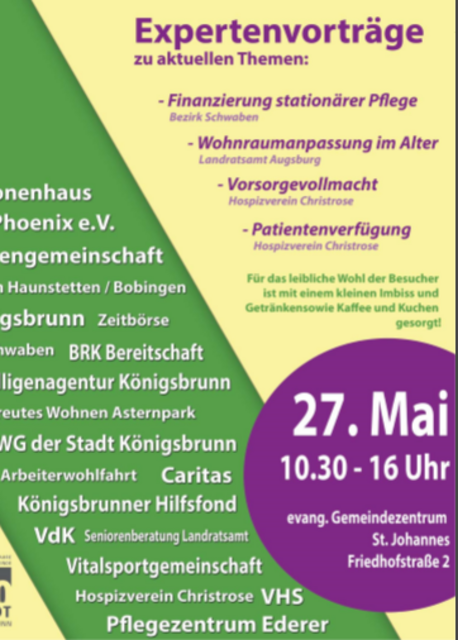 Die Stadt Königsbrunn veranstaltet am 27. Mai mit 20 Kooperationspartner den 1. Infotag für Senioren und deren Angehörige