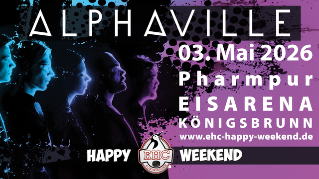 Mit einem musikalischen Paukenschlag geht das EHC Happy Weekend in 2026 in seine letzte Runde. Dabei ist es dem EHC Königsbrunn gelungen am 3.5.26 mit Alphaville eine der namhaftesten internationalen Synthpop-Gruppen zu gewinnen. Mit Ihren Hits „Forever Young“, „Big in Japan“ oder „Sounds like a Melody“ wurde die Band weltweit bekannt. In 2024 vertonte Alphaville & Star-DJ David Guetta den Welt-Hit „Forever Young“ neu und landete direkt in den deutschen Single-Charts. Inzwischen hat Alphaville...