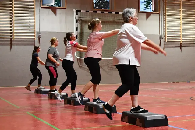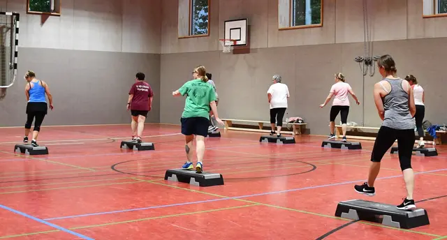 Step Aerobic beim TV Eintracht gibt es seit über 25 Jahren und das Angebot kommt noch immer an. Auch Anfänger sind willkommen und werden dabei unterstützt, sich in die Choreographien einzufinden. Natürlich gehören auch ein ordentliches Aufwärmen und ein entsprechendes Cool down zur Übungsstunde.