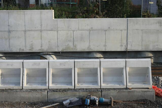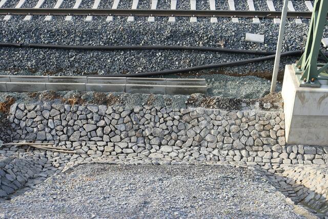 Südlich der Station ist mit der Errichtung einer Bahnsteigkante begonnen worden.
