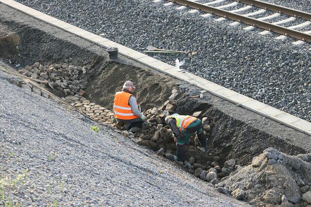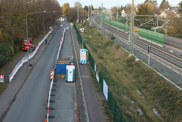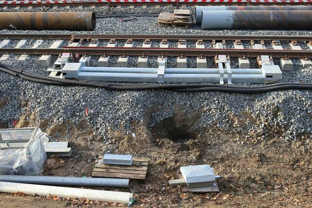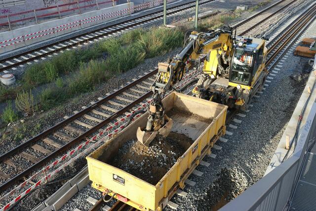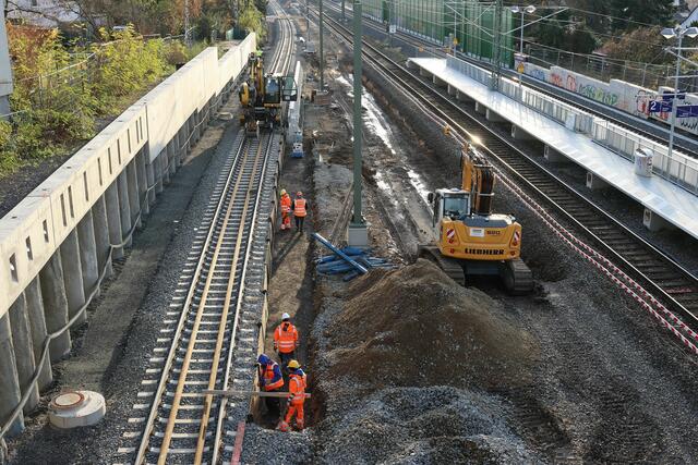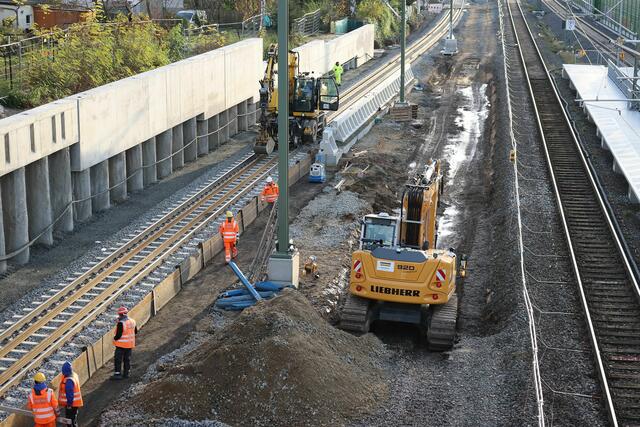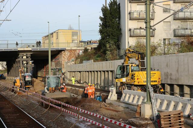 Beim Fußgängersteg nördlich der Station wurde gebaggert.