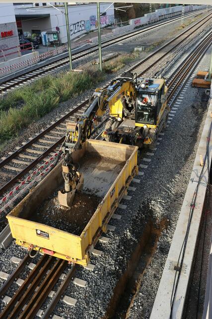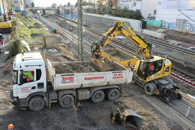 Am nördlichen Rand von Ginnheim waren Bauarbeiter mit Baggern auf der S-Bahn-Trasse unterwegs.
