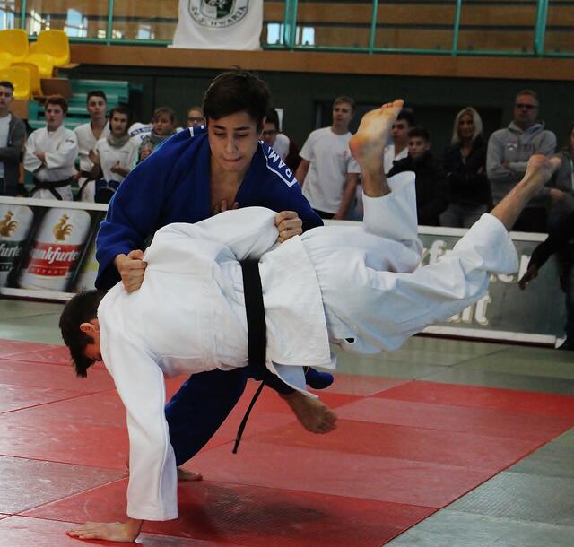 In der darauffolgenden Trostrunde kam es zu einem erneuten Aufeinandertreffen mit dem Dauerrivalen aus Abensberg. Die letzte Auseinandersetzung bei den süddeutschen Meisterschaften konnten die Babonen noch knapp für sich entscheiden. Nach einem Rückstand von 1:3 benötigten die Münchner nun drei Punkte in Folge, um weiter im Turnier bleiben zu können. Ein fast aussichtsloses Unterfangen bei der sehr starken Besetzung der Abensberger Mannschaft. Durch die vielen mitgereisten Fans angepeitscht, erkämpfte sich der TSV Großhadern Punkt um Punkt. Rami Pangerl und Julian Buck schafften das fast unmögliche Unentschieden vor dem letzten Entscheidungskampf in der Gewichtsklasse bis 50 kg. Diese Bürde hatte Luis Schmidt zu tragen. Durch ein zielgerichtetes Coaching seines Trainers Gordon fantastisch eingestellt, dominierte der Münsinger Kämpfer von Anfang an das Geschehen und sicherte seinem Team durch einen spektakulären Wurf den Einzug in die nächste Runde.