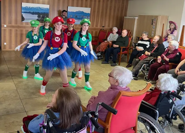 Das Motto " Forever young" spiegelte sich in fantasievollen Kostümen, die mit Liebe zum Detail gefertigt wurden wider und fand starke Bewunderung. 'Alice im Wunderland', ' 100 Dalmatiner ', Mario und Luigi', ' Familie Feuerstein' und acht " Junge" Pippi Langstrumpfs verzückten die Heimbewohner. Mit einem Walzer eröffnete das Prinzenpaar ein buntes Programm. Die vielfältigen Choreographien, akrobatischen Einlagen und mitreißende Musik brachten die Stimmung auf Hochtouren. Es wurde geschunkelt, mitgesungen und bis zum Schluss geklatscht.