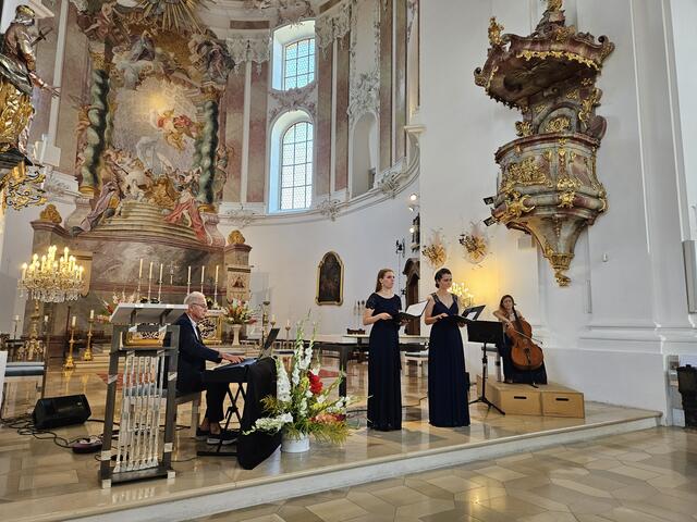 Am Nachmittag fand um 16.00 Uhr das Konzert „Perlen der Klassischen Kirchenmusik“, organisiert von unserem Organisten Roland Plomer, statt. Ausführende waren Vanessa Fasoli (Sopran), Judith Werner (Alt) und Teresa Alvarez Garcia (Cello). Die Begrüßung und erklärende Worte zu den Musikerinnen und Werken sprach Wallfahrtsdirektor P. Hans-Joachim Winkens.