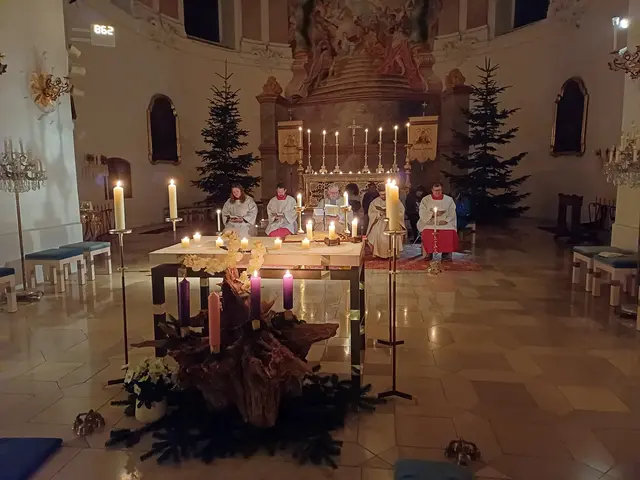 Nach langer kirchlicher Tradition werden in der Adventszeit sogenannte Rorate Messen gefeiert. Auch in der Wallfahrtskirche Herrgottsruh wird dieser religiöse Brauch gepflegt. Es sind sogenannte Marienmessen im Advent. Immer mittwochs in der Adventszeit bei der Abendmesse erscheint die Wallfahrtskirche im Kerzenschein für die Gläubigen in einem anderen Licht. Die Gemeinde singt „Tauet ihr Himmel den Gerechten, ihr Wolken regnet ihn herab.“ Am Mittwoch, dem 10. Dezember, wurde die Marienmesse am Fest „Unserer Lieben Frau von Loreto“ gefeiert, das Papst Franziskus erst 2019 für die ganze Kirche eingeführt hat. Wallfahrtsdirektor Pater Hans-Joachim Winkens machte in seiner Einführung zum Gottesdienst aufmerksam, dass die Verkündigung der Geburt Jesu an Maria durch den Erzengel Gabriel, die in Nazareth im Haus der Maria stattfand, das Festgeheimnis ausmacht. Der Legende nach sollen Engel das Haus der Maria nach Loreto übertragen haben. Der geschichtlichen Wahrheit etwas näher kommt allerdings die Überlieferung, dass einst Kreuzfahrer das Haus nach Loreto überbracht haben.