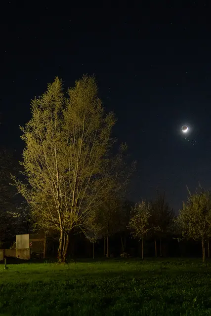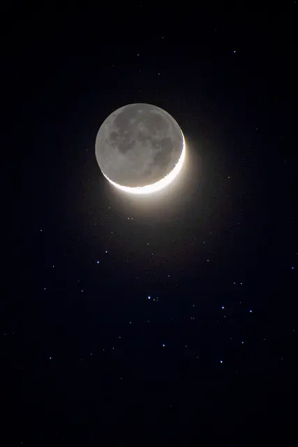Der Mond mit der Mondsichel mit Erdschein wurde von den Plejaden begleitet. Darunter war auch die Venus am Abendhimmel.