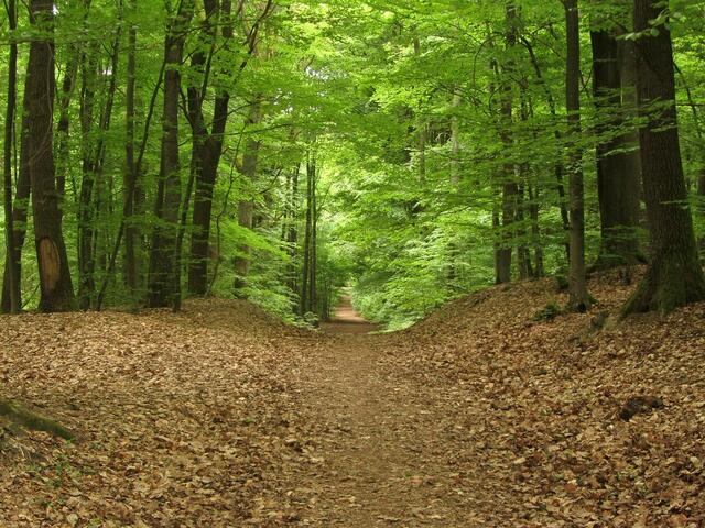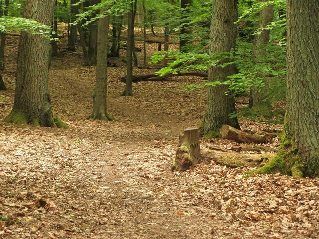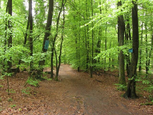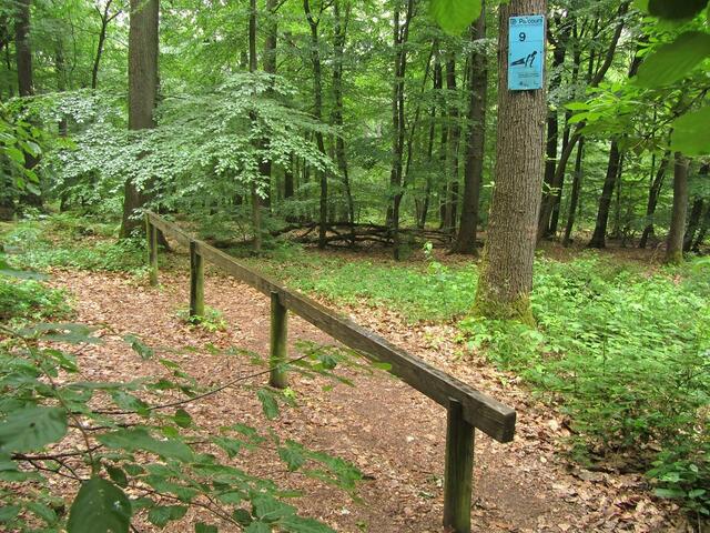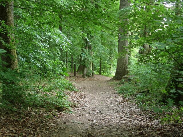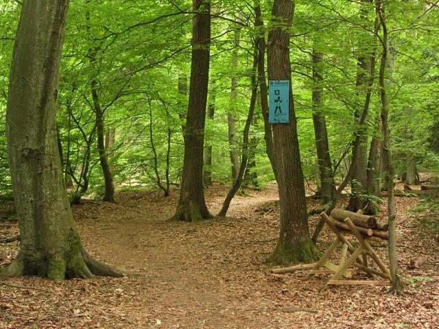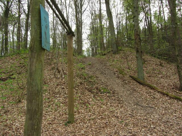 Nach dem Überqueren des Hauptwegs, an welchem sich die Stationen 11 und 12 befinden, geht es bergab geradeaus Richtung Startpunkt. Der erste Teil des Wegs ist ein holpriger Pfad, an welchem man zu den letzten beiden Stationen kommt. Ein Stück weiter erreicht man den Abzweig zu Station 1, ab dem der Weg wieder breit und gut geplegt wird.