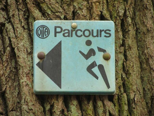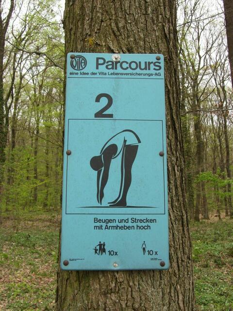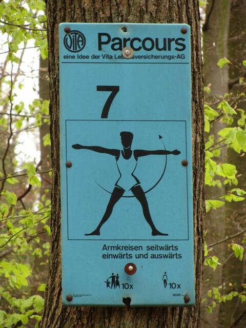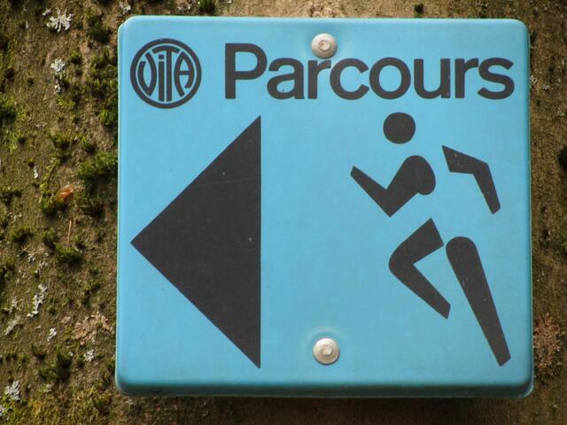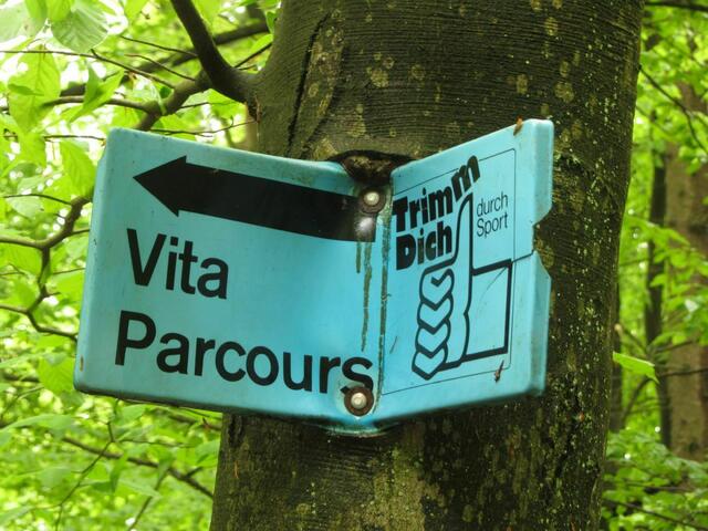 - Stück von einem großen Wegweiser zum Vita-Parcours (in Friedrichsdorf nicht vorhanden)