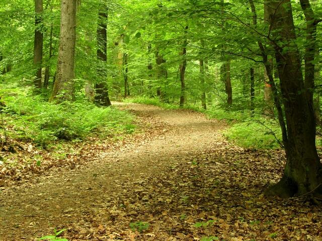 Nach Station 8 geht der bisher schnurgerade verlaufende Weg in eine Linkskurve über.
