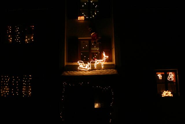 Jedes Fenster wird beleuchtet, jedes Zimmer umdekoriert, die Türen behängt,Süßigkeiten für die Kinder vor die Tür gestellt- und- mein Traum ist es um den Dachspitz rum einen Lichterschlauch zu hängen. Zuhause hät ich ihn schon 34 Meter lang.... Aber in diesem Jahr war es - zuerst zu "stürmisch" und dann---- keine Hebebühne aufzutreiben- und nun..........meine Fenster leuchten und meine Familie meint mit leicht ironischem Blick---- "das reicht".