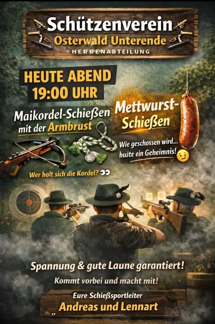 Komparsen im Tatort Im Jahr 2025 erhielt der Schützenverein Osterwald Unterende eine besondere Anfrage: Für eine neue Folge der ARD-Krimireihe „Tatort“ mit dem Arbeitstitel „Schützenfest“ wurden Komparsinnen und Komparsen gesucht. Schnell war die Begeisterung groß – schließlich bot sich die seltene Gelegenheit, Teil einer echten Fernsehproduktion zu werden. Die Dreharbeiten begannen Anfang Juli während des Schützenausmarsches in Hannover, dem Höhepunkt des größten Schützenfestes der Welt....