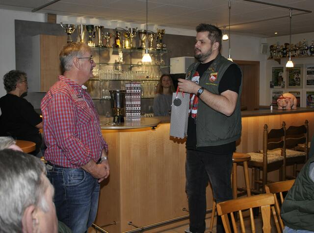 Alles wartete dann gespannt auf den offiziellen Akt, Andreas Wichmann und Lennart Gieselmann begannen mit der Siegerehrung für die Schießen im November.