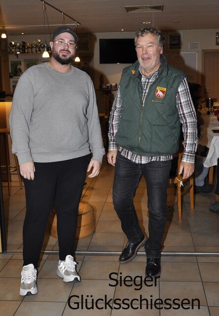 Dann folgte die Siegerehrung für des Jahresabschluss - Glücksschießen. Es waren Preise für alle Teilnehmer aufgebaut, es siegte Bernd Körber vor Reiner Kothe und Daniel Niffka. Nur 5 Schützen erzielten ohne Adlerauge eine 10!