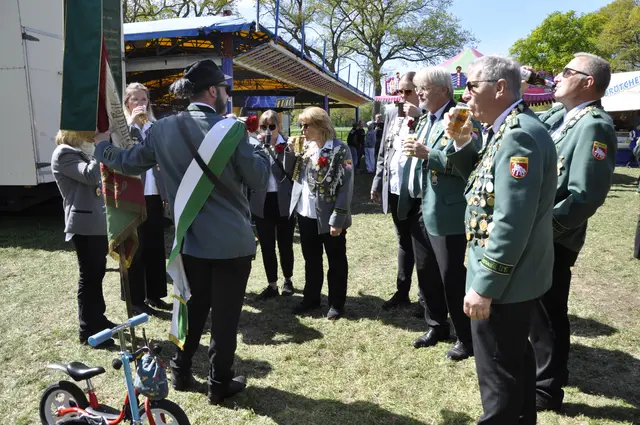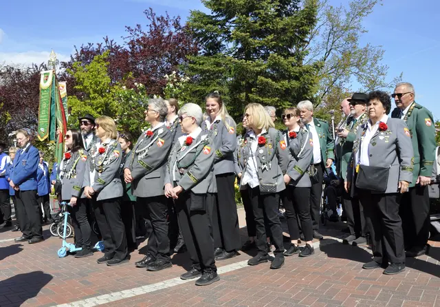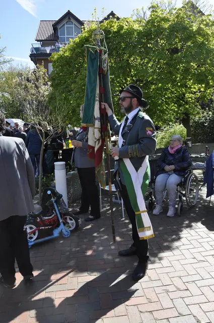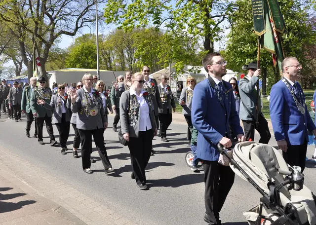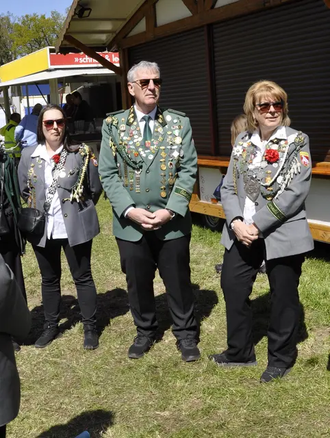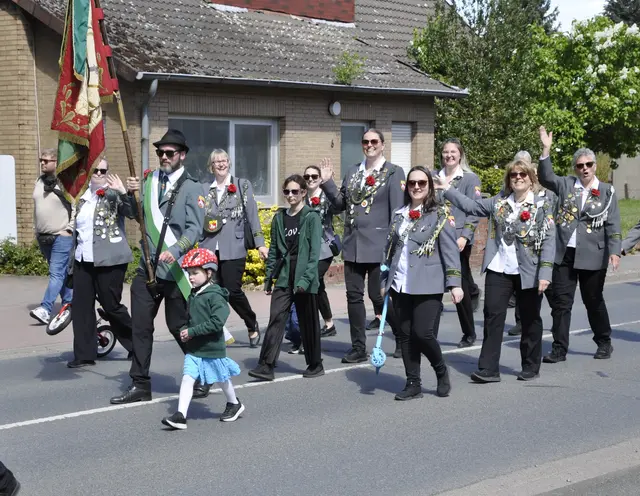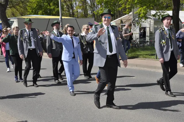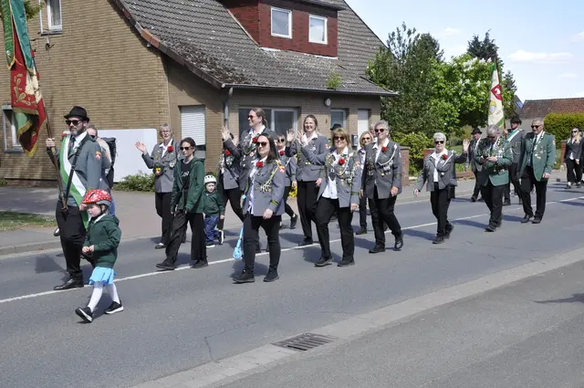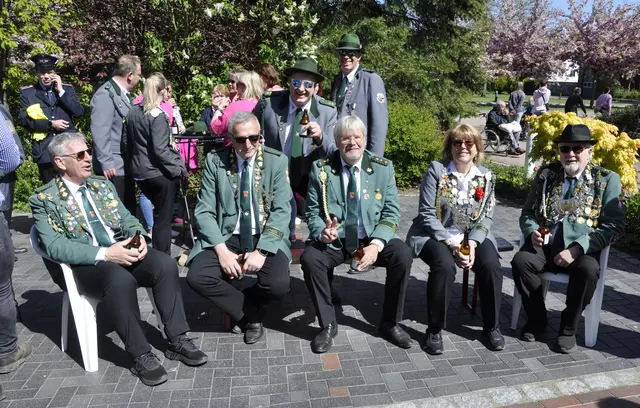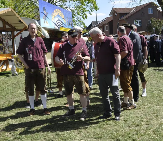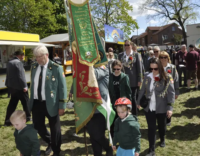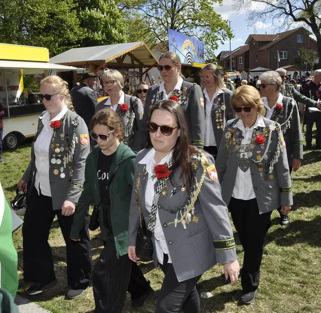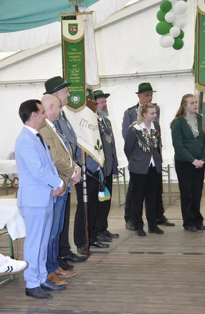 Die Schützenfestsaison 2026 hat begonnen! Das 1. Schützenfest im Jahr im Stadtgebiet der Stadt Garbsen findet traditionsgemäß in Meyenfeld statt. An der Menge der Schützen konnte man erkennen, daß alle das 1. Schützenfest sehnsüchtig erwartet hatten. Der Schützenverein Osterwald Unterende folgte der Einladung der Schützenfreunde aus Meyenfeld und kam am Sonntag, 26. April 2026 mit einer größeren Abordnung auf den Schützenplatz. Zum Ummarsch formierten sich die Schützenvereine auf dem Festplatz. Nach einem längeren Zwischenstop in der Residenz „Haus der Ruhe“ wurde der Festplatz wieder erreicht, hier stand schon das kühle Nass auf dem Tisch, es wurde kräftig angestoßen.