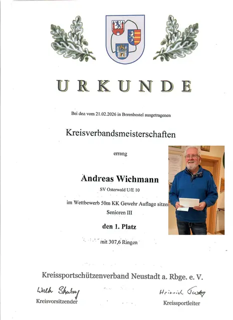 Andreas Wichmann - Senioren III - Platz 1 - 307,6 Ring - Kreismeister!