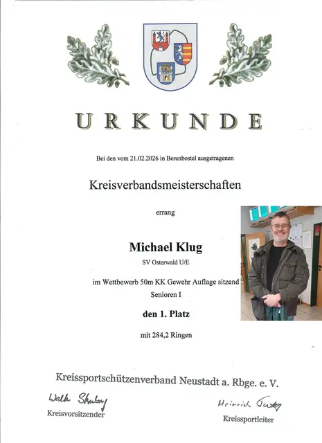Michael Klug - Senioren II - Platz 1 - 284,2 Ring - Kreismeister!