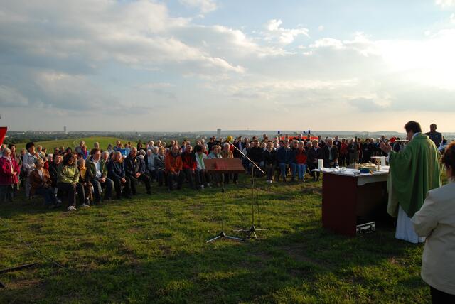Von Stadtpfarrer Ralf Gössel zelebriert und von den Jubilaren musikalisch umrahmt gab es an diesem Abend wohl keinen schöneren Ort, um Gott für ein 30-jähriges Vereinsjubiläum zu danken. Hoch über den Dächern von Gersthofen und bei trockenem, teils sogar sonnigem Wetter, war am Ende so mancher der Meinung, dass der liebe Gott ein Musiker sein muss. Denn er hielt den rund um Gersthofen niedergehenden Regen gekonnt vom Gipfel des Berges ab. So konnten die anwesenden Gläubigen einen sehr besinnlichen Gottesdienst mit gängigen Liedern aus der Deutschen Messe und anderen „Hitlisten“ der Liturgie, wie Pfarrer Gössel es formulierte, feiern.