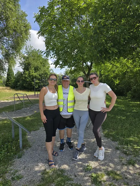 Der bekannteste Freizeitsportler Gersthofens trifft die DesiFit Mamies jede Woche beim Turnen in der Outdoor Anlage via Claudia in Gersthofen Bayern Gersthofen 27.06.25 Desislava Yordanova-Ilic Bürgerreporter:in