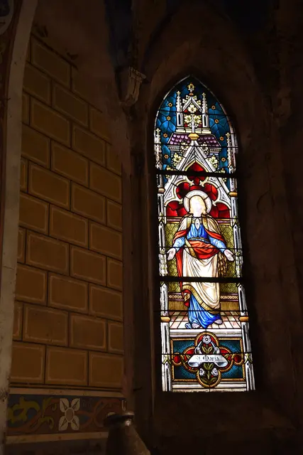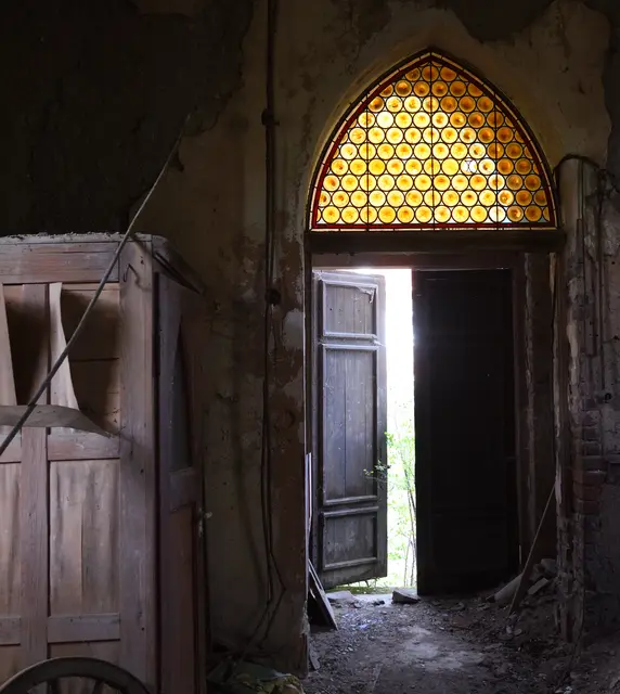 Die alte, denkmalgeschützte Kapelle befindet sich im Privatbesitz auf einem Privatgrundstück und ist für die Öffentlichkeit nicht zugänglich. Ich durfte, dank der Besitzerin einen Blick in das stark sanierungsbedürftige Kapellchen werfen. Zwei Buntglasfenster sind noch gut erhalten und man kann die reichen Verzierungen am Chorbogen und der Kuppel noch erahnen. Zudem ist man erstaunt, dass der Innenraum doch größer ist, als man von außen vermutet. Ansonsten wäre hier ein größerer finanzieller und baulicher Aufwand nötig, um die alte Kirche wieder herzurichten.