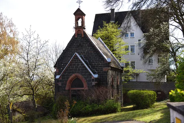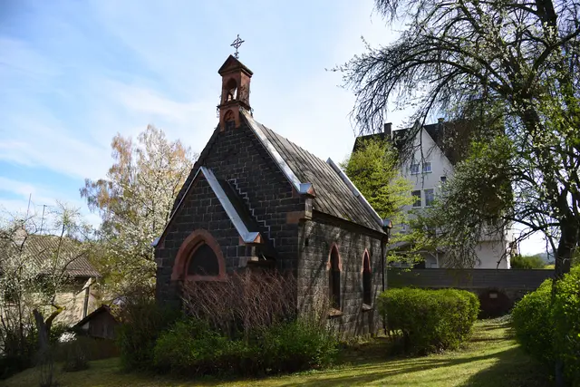 Ganz in der Nähe findet man das "Kapellchen", das 1885 erbaut wurde. Bis zum Jahr 1946 fanden hier die Gottesdienste für die kleine katholische Gemeinde statt. Mit der Zuwanderung der Heimatvertriebenen nach dem Zweiten Weltkrieg wurde sie zu klein. Übergangsweise nutzte die Gemeinde die evangelische Kirche bis zum Neubau einer Katholischen Kirche.