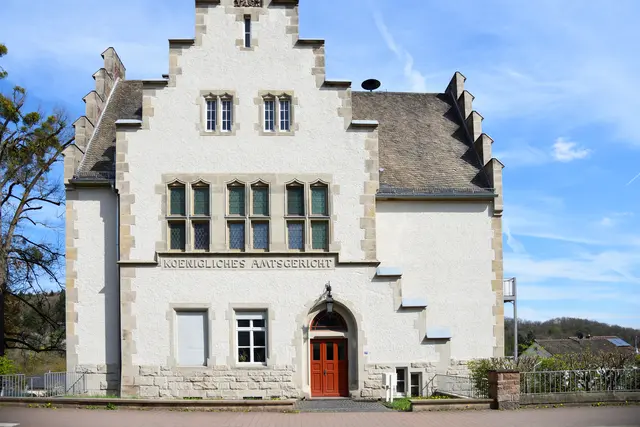 Das imposanteste Gebäude ist das ehemalige "Königliche Amtsgericht", das 1907 erbaut wurde. Damals gehörte das Hinterland noch zum Königreich Preußen. Bis zum 1. Juli 1968 war es ein eigenständiges Gericht der ordentlichen Gerichtsbarkeit. Danach fungierte es als Zweigstelle des Amtsgerichts Biedenkopf, bis diese Zweigstelle am 1. November 2003 endgültig aufgelöst wurde. Inzwischen ist das denkmalgeschützte Gebäude nach einer grundlegenden Sanierung zu traumhaft schönen Eigentumswohnungen und Apartments umgebaut worden. Diese gelungene und sehenswerte Aktion kann man auf einem Youtube-Video ansehen.