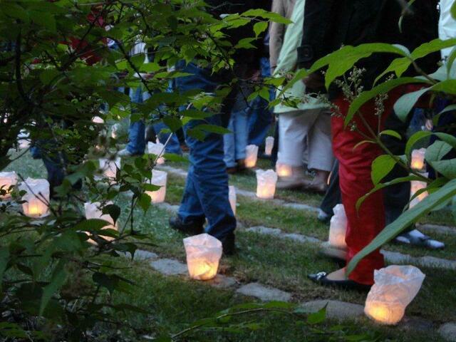 Das Eintreten ins Labyrinth bei fortschreitender Dämmerung nahmen die Frauen und Männer gerne an und machten sich auf den Weg zur Mitte.