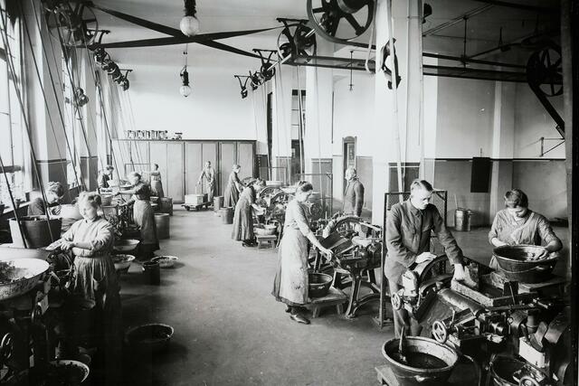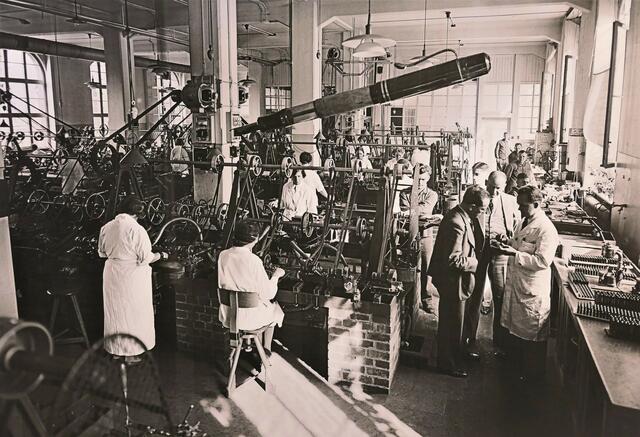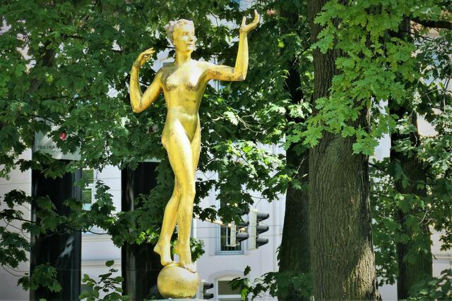 Die goldfarbene Statur war ein Geschenk der Mitarbeiter an die Firmenleitung und sie steht noch immer dort, an dem historischen Arbeitsplatz ...