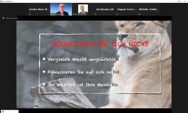 Rund 75 Teilnehmende waren an der Auftaktveranstaltung der LSB-Impulsvortragsreihe „Von erfolgreichen Frauen lernen“ 2020 mit Ilka Piechowiak zugeschaltet, denn aufgrund der Corona-Pandemie fand das Event erstmals als Online-Veranstaltung (via Zoom / edubreak dialog) statt.
