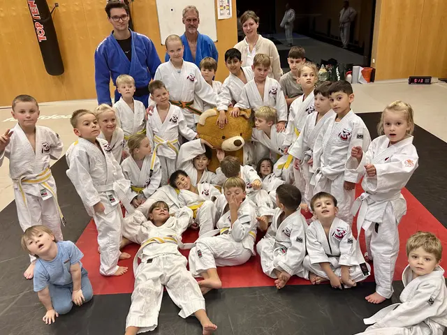 Judo-Kinder trainieren bei der Bereitschaftspolizei Königsbrunn; Der Königsbrunner Judo-Bär im Mittelpunkt
