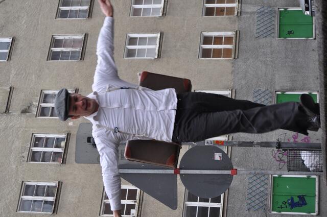 Bereits hier begann es den ersten Schülern klar zu werden, dass diese Führung keine trockene, langweilige Wissensvermittlung sein würde. Der Schauspieler Florian Kreis trat als junger Brecht auf, drängelte sich zwischen die Schüler und fesselte mit seinem lebendigen Spiel. Durch seine präsente Art, mit welcher er rezitierend und torkelnd die Treppe herunterstieg, zog er Schüler wie Lehrer gleichermaßen in seinen Bann.