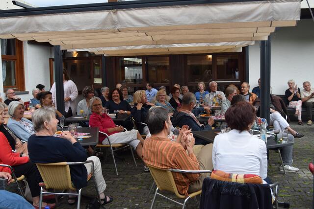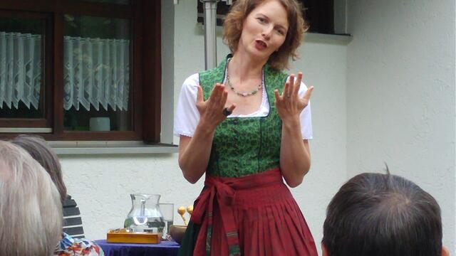 Der Optimismus hat gesiegt und der Abend fand im schönen „Märchen-Garten“ der AWO statt. Und es hat sich gelohnt. Die Regenwolken haben dicht gehalten und erst eine dreiviertel Stunde nach Ende der Veranstaltung ihre Schleusen geöffnet. Vielleicht lag es daran, dass Frau Häfele das erste Märchen der wärmenden Kraft der Sonne widmete. Es ist der Sonne nämlich gelungen, dass ein Ehepaar nach einem Streit sich wieder zu harmonischer Eintracht gefunden hat. Ein anderes Märchen erzählte davon, dass Zwerge verzauberte Kleidungsstücke geschaffen haben. Der Zauber bestand darin, dass jedem Träger, der ein solches Kleidungsstück trägt, der erste Wunsch erfüllt wird. Da kam es natürlich im Märchen zu den kuriosesten Wünschen, die alle in Erfüllung gingen. Nach mehreren wunderschönen Märchen ging der Abend langsam zu Ende. Allerdings hatte der AWO Vorsitzende Otto Müller das Gefühl, dass er auch so ein Zauberhemd trägt. Er äußerte den Wunsch, dass Frau Häfele als Zugabe noch ein Märchen erzählt. Dieser Wunsch wurde auch von den Anwesenden mit viel Beifall unterstützt. Und siehe da, der Wunsch wurde erfüllt.