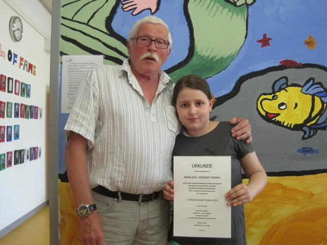- Annalena bekommt eine Urkunde + 2 Ferienpass Aktionen geschenkt.