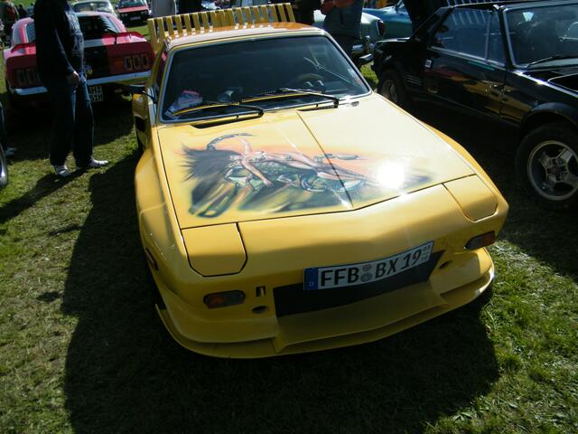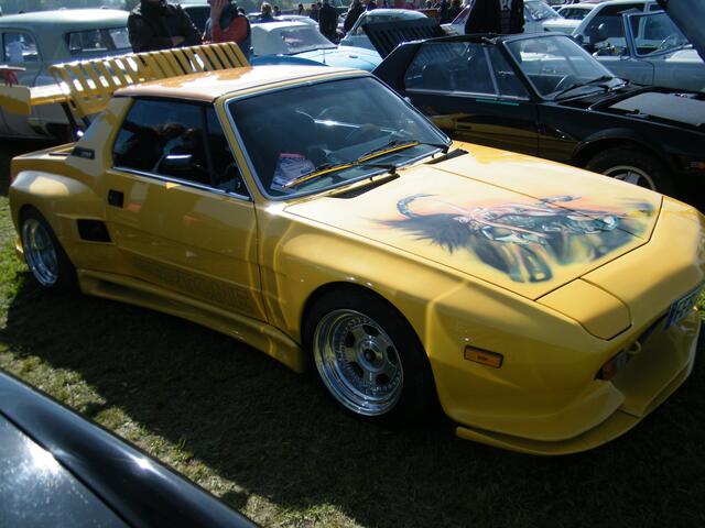 Diesen tiefer gelegte X 1/9 mit einem sehr schönen Airbrushbild auf der Haube war auf dem Oldtimertreffen in Jesenwang.