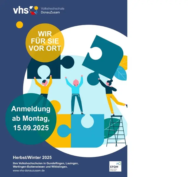 Das neue Programm der Volkshochschule DonauZusam für Herbst und Winter steht in den Startlöchern – mit rund 500 Kursen, Fahrten und Veranstaltungen für alle Altersgruppen und Interessen. Ob Kultur, Sprachen, Kreatives, Technik, Gesundheit, Natur oder berufliche Weiterbildung – das vielfältige Angebot lädt zum Entdecken, Lernen und Mitmachen ein. Anmeldestart ist am Montag, 15. September 2025. Die vhs DonauZusam vereint die Standorte Lauingen, Wittislingen, Gundelfingen und Zusamtal...