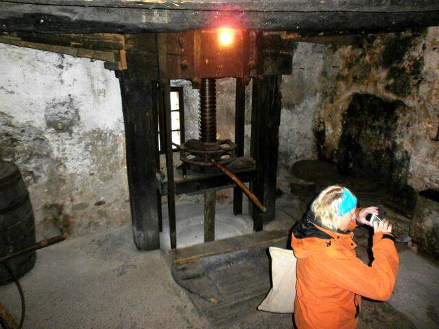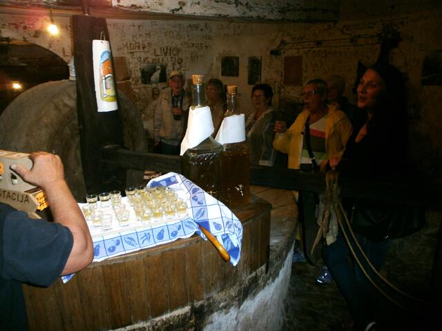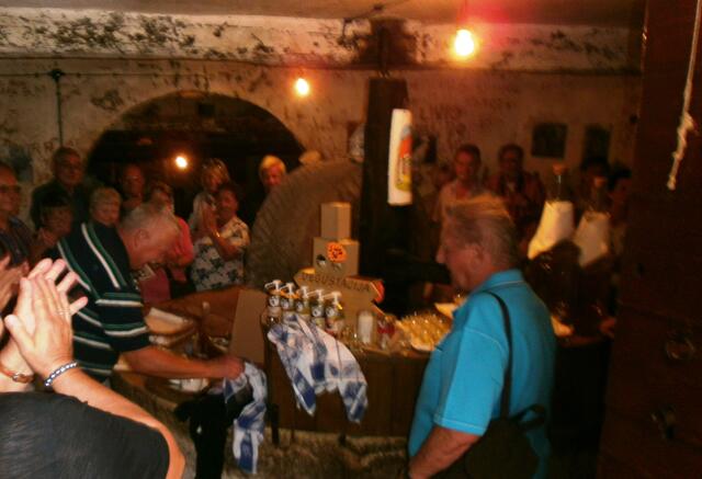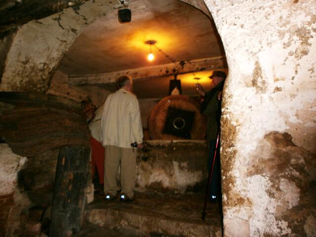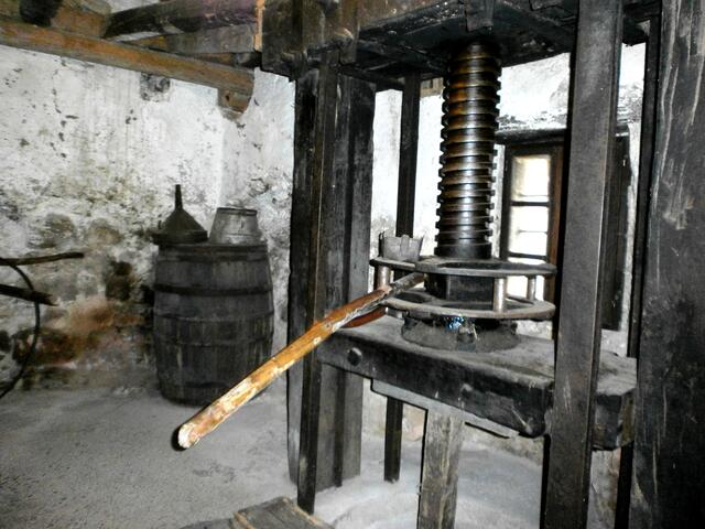 Weiter führte uns der Bürgermeister auf seine außergewöhnliche Art und Weise durch das kleine Örtchen mit seinen ca. 100 Einwohnern. Wir erlebten die engen Gassen hautnah auf unserem Weg zu der ca. 300 Jahre alten Olivenölmühle um Schnaps zu probieren. Mit viel Humor erläuterte uns der Bürgermeister wie Olivenöl gewonnen wird und machte auf seine lustige Art und Weise Werbung für die verschiedenen Schnäpse, Olivenöl, Lavendel, Keramik und noch vieles mehr, was man im kleinen Lädchen bei seiner Cornelia erwerben kann.