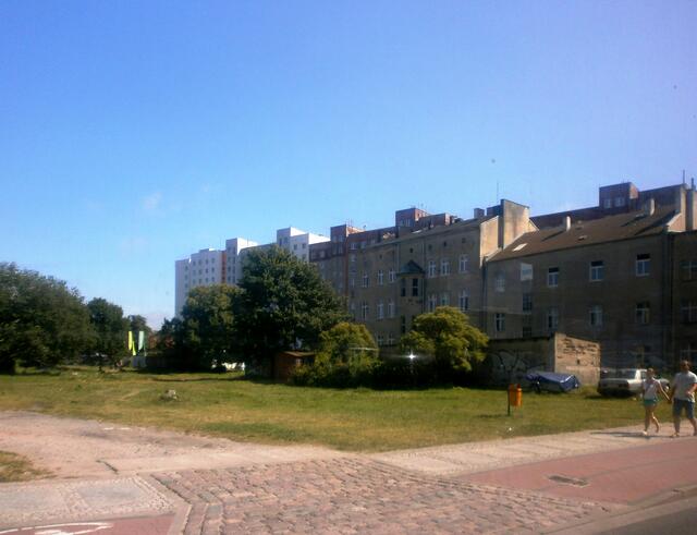 Auf der Rückfahrt von der Grenze sehen wir auf unserer linken Seite den großen Polenmarkt. Er ist der größte Flohmarkt Europas.