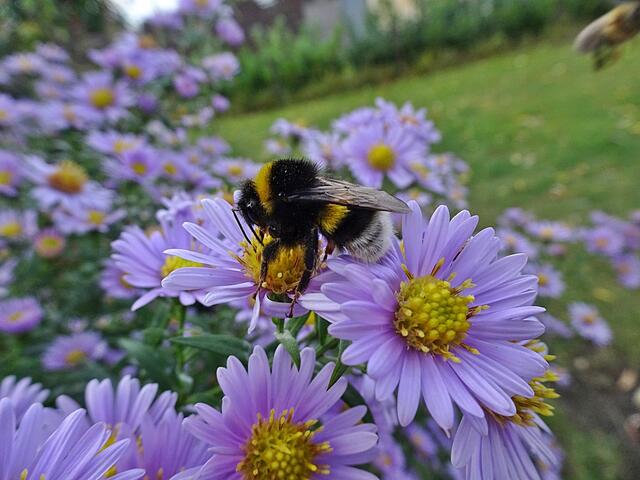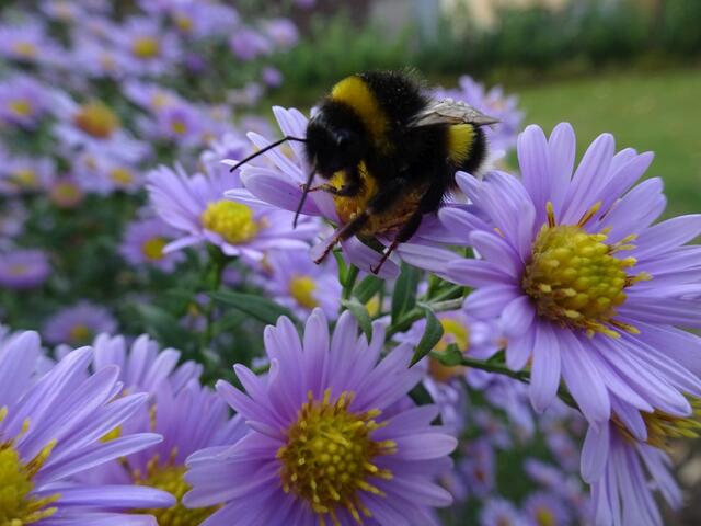 Von Blühte zu Blühte. Anziehend sind unsere Astern im Garten.