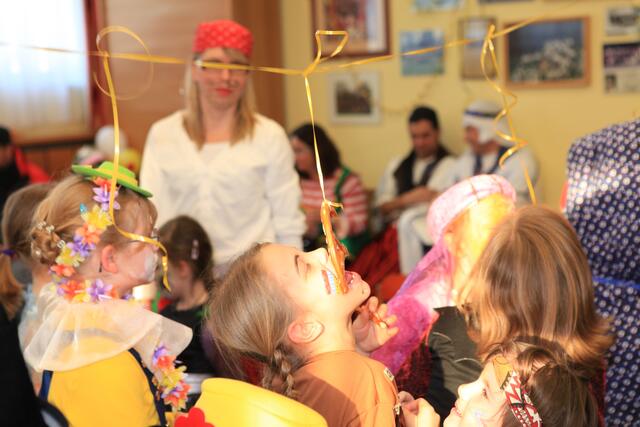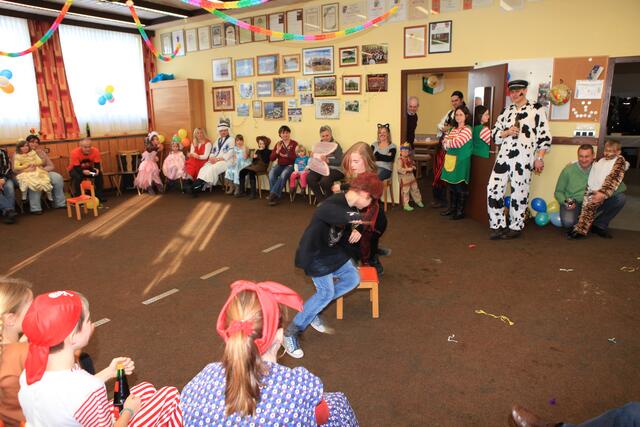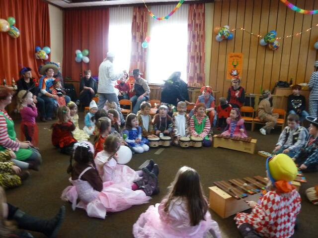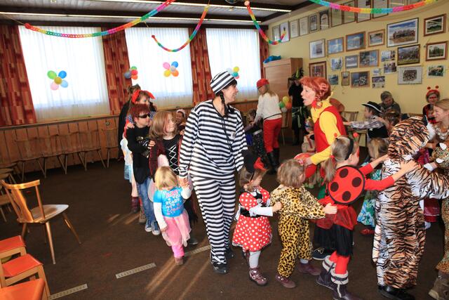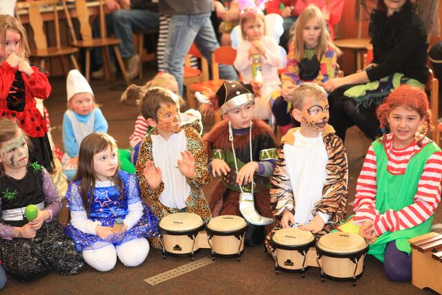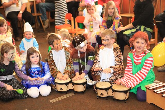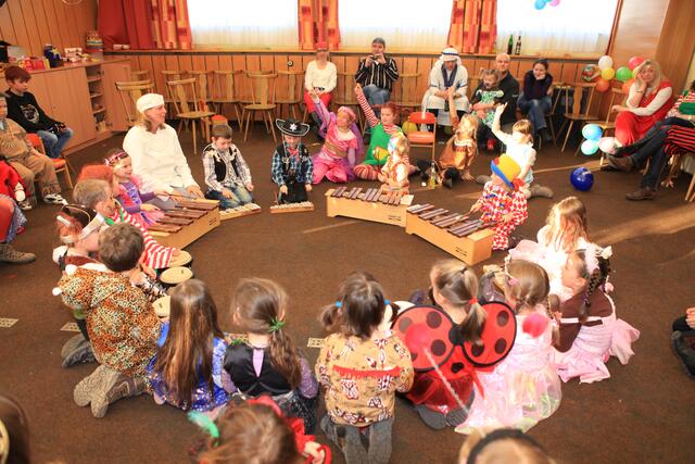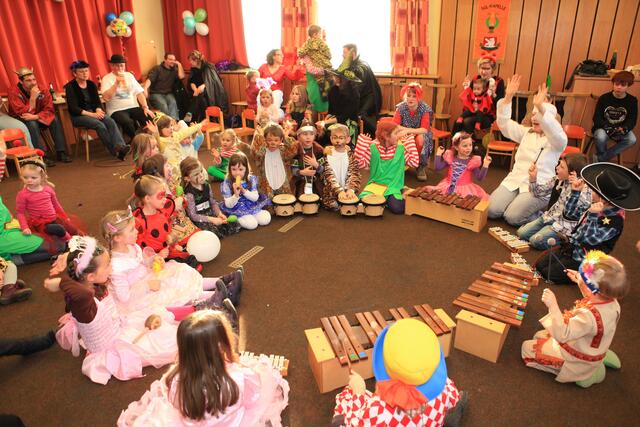 Am Sonntag, den 12. Februar 2012 wurde von der SGL-Kapelle zum lustigen Faschingstreiben eingeladen. Knapp 50 Kinder fanden mit ihren Eltern am Nachmittag den Weg in die Übungsräume der Musiker in der Meitinger Nordfeldsiedlung. Ein bunt geschmückter Probenraum mit Luftschlangen, Girlanden, Luftballons, toller Musik und einem leckeren Kuchenbuffet empfing die kleinen Narren. Patricia Lofner und Bianka Prokoph , die beiden Hauptinitiatoren des Faschingsballs, hatten sich bei den Vorbereitungen richtig ins Zeug gelegt. Viele der Musikereltern hatten leckere Kuchen und Torten gebacken, die gegen eine kleine Spende verspeist werden konnten. So gestärkt konnte die Sause auch schon beginnen. Mit einer Polonaise, angeführt von Bianka Prokoph ging es durchs Musikheim. Mit lustigen Spielen, moderiert von Patricia Lofner, ging es weiter. So gab es zum Beispiel die „Reise nach Jerusalem“, Brezeln-schnappen, einen Luftballontanz und Mohrenkopfwettessen. Die Kinder der Musikalischen Früherziehung und die Flötenmäuse bereicherten den Faschingsball noch mit einer kleinen Einlage, bei der alle Gäste aufgefordert waren mitzusingen und mitzuspielen. So kamen bei „Aram-sam-sam“ alle ganz schön ins Schwitzen. Highlight des Nachmittags war die Präsentation aller „Maschkerle“ auf dem Laufsteg und eine Verlosung mit tollen Preisen. Diese hatten viele Geschäfte des Marktes Meitingen für den Kinderball zur Verfügung gestellte. Ein herzliches Dankeschön geht dazu an alle Spender und Sponsoren! Nach so viel Spiel und Spaß hatten alle großen und kleinen Gäste wieder mächtig Hunger, der vom fleißigen Küchenteam mit Pommes gestillt wurde. Am Ende waren sich alle einig, dass dieser erste Faschingsball der SGL-Kapelle sicherlich nicht der letzte war und im nächsten Jahr unbedingt wiederholt werden muss.