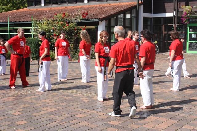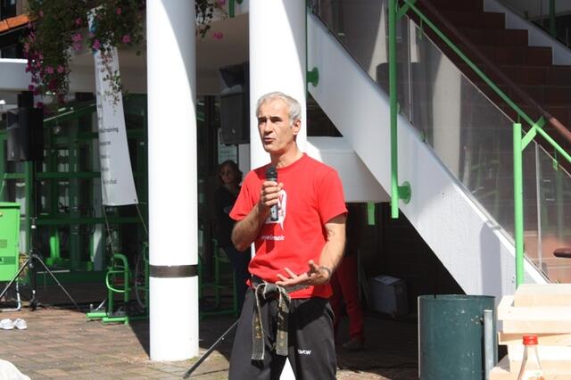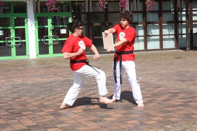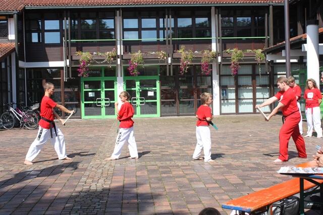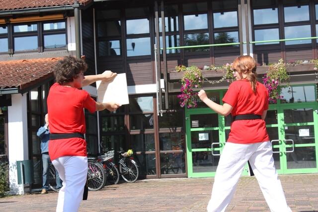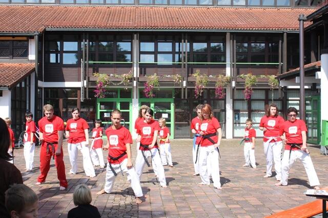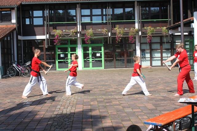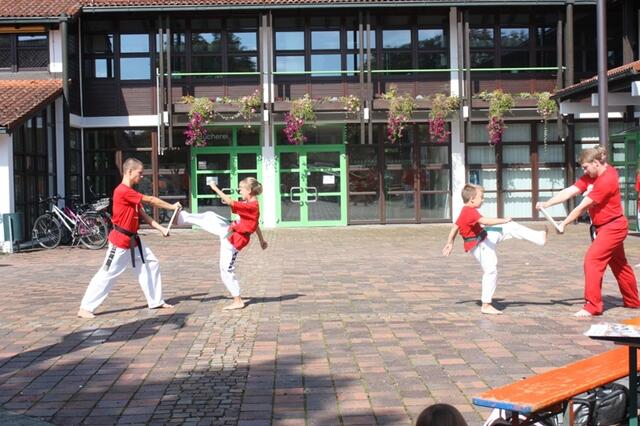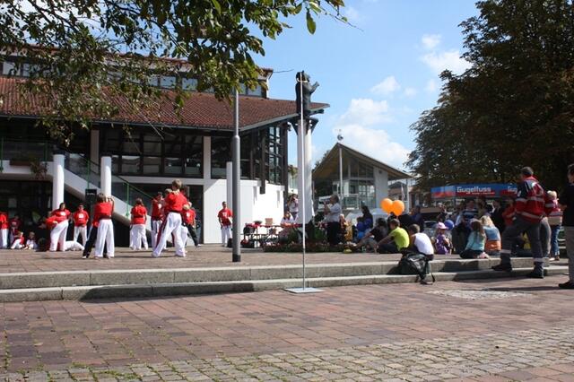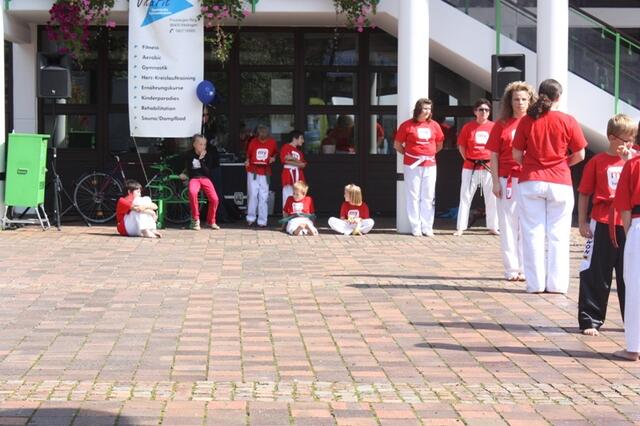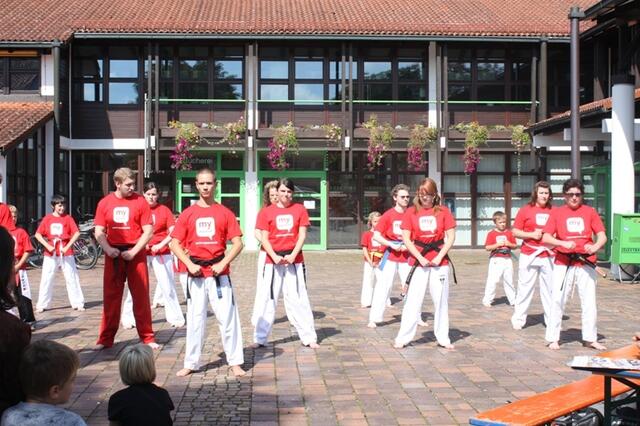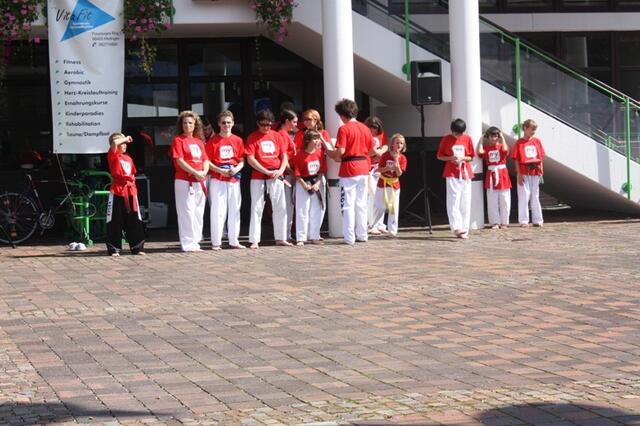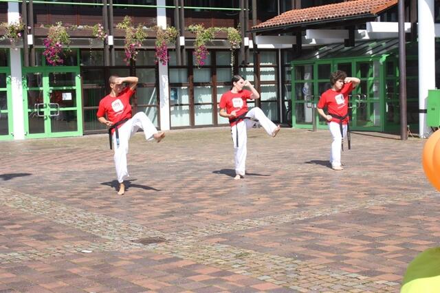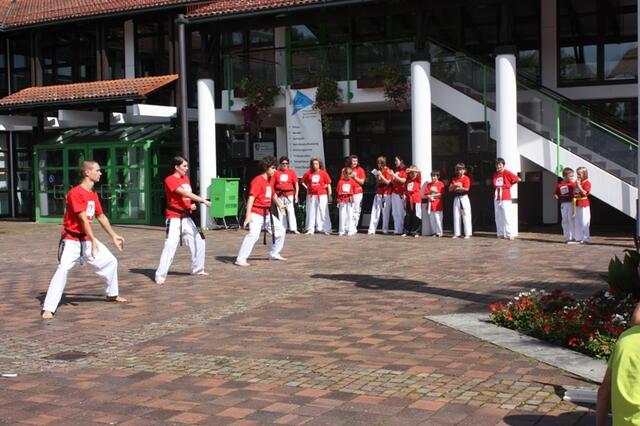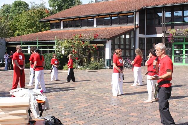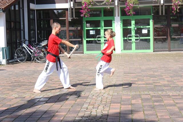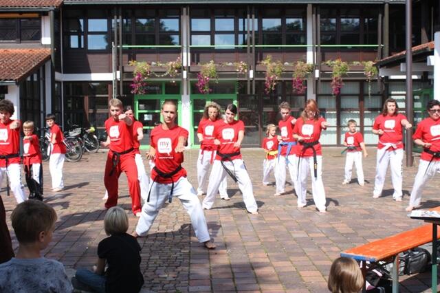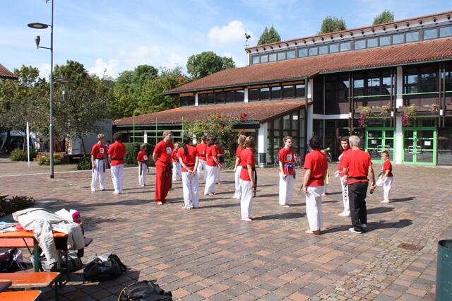 An beiden Messetagen auf der mega zeigten Ali Kocaman und seine jungen Kampfsportschüler auf dem Rathausplatz wieder ihr Können, und das - fast schon traditionell - am Samstag komplett in myheimat-T-Shirts gekleidet! Choreografien der ganz Kleinen oder der Jugend, zertrümmerte Holzbretter nach spektakulären Schlägen und Tritten und sogar ein zerbrochener Fluss-Stein versetzten die vielen Zuschauer ins Staunen.