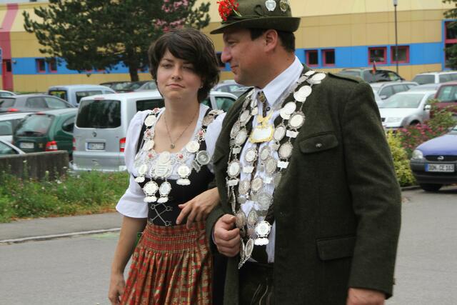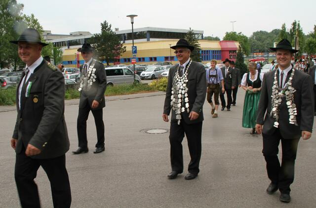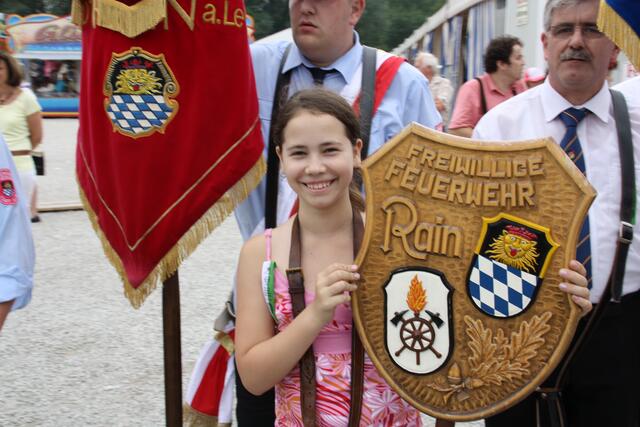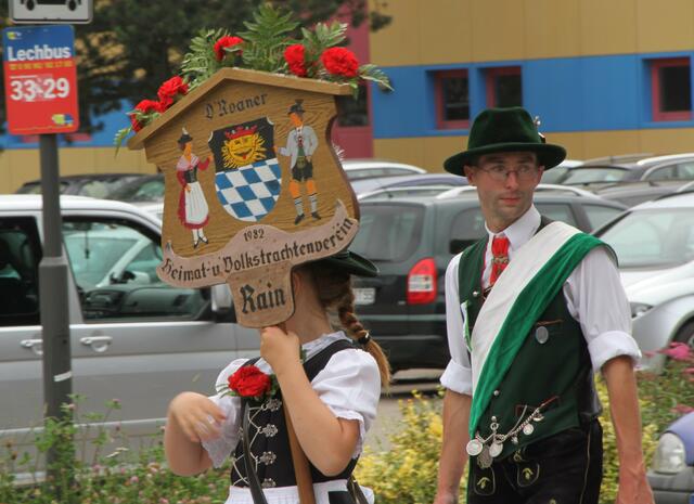 Begonnen hat dieser Tag mit einem Weckruf um 6:30 Uhr der Stadtkapelle Rain und den Böllerschützen. Um 8:00 Uhr war Empfang der Vereine im Festzelt. Nach dem Gottesdienst um 10.00 Uhr folgten Festansprachen des Bürgermeister Gerhard Martin, des Schirmherr, des Schützenmeisters und anderen.