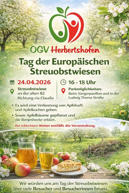 Der Obst- und Gartenbauverein Herbertshofen beteiligt sich heuer erstmals am „Tag der Europäischen Streuobstwiesen“, einer europäischen Gemeinschaftsaktion für Streuobstwiesenfreunde und zur Streuobstwiesenpflege (Bild).