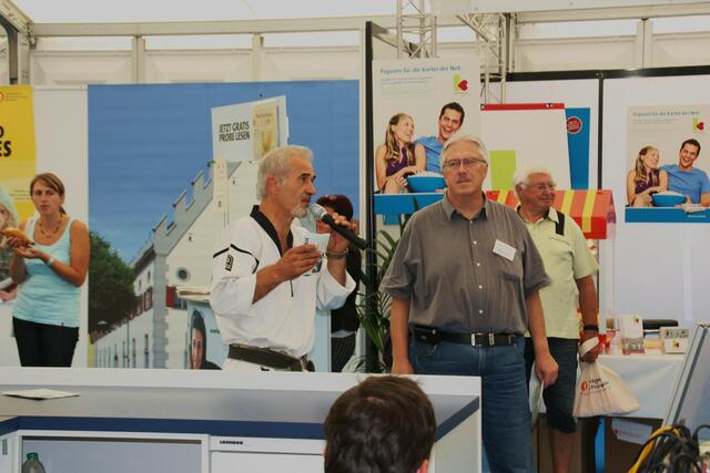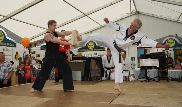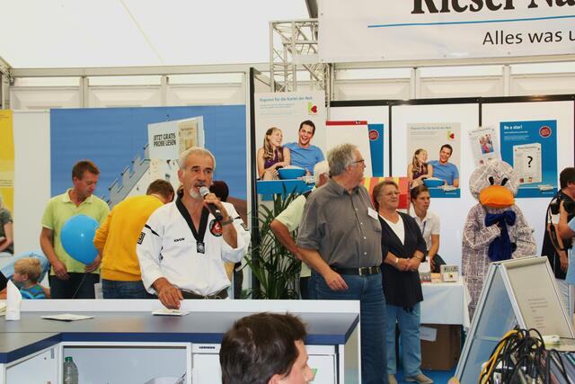 Die Kampfsportgemeinschaft Kocaman hatte am 1. Oktober eine Vorführung auf der 14. Donau-Ries-Messe in Nördlingen. Angekündigt wurden wir von Frank Drechsler von den Rieser Nachrichten, der anschließend unserem Großmeister das Mikro übergab. Dieser informierte die Zuschauer über die Geschichte und den Sinn des Kampfsports. Bei den 17 Akteuren aus drei Schulen (TSV Rain, KSS Nördlingen und KSS Meitingen) waren auch Kämpfer die mehrere Titel gewonnen hatten, wie Bayerischer Meister, Deutscher Meister und World-Cup-Sieger.