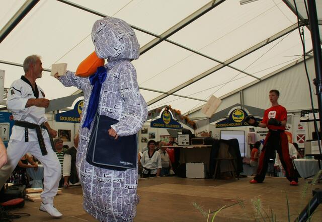 Am Ende dieser Vorführung bat Ali die Zeitungsente Paula Print auf die Bühne, die ihm ein 3 cm dickes Brett frei schwebend hielt. Durch einen Handkanten-Bruchtest beförderte Großmeister Ali die Hälfte des Brettes hinter die Bühne, die andere blieb in der Hand der Zeitungsente.