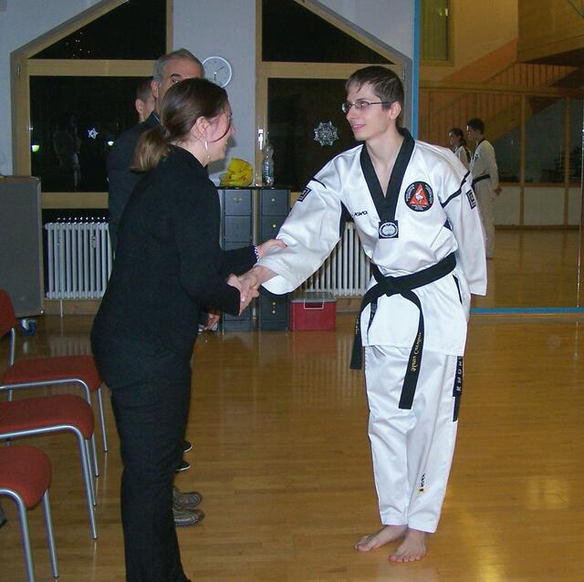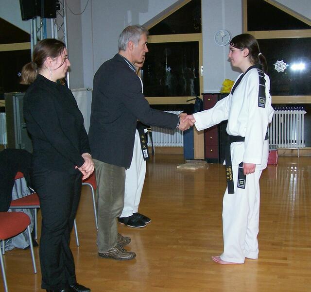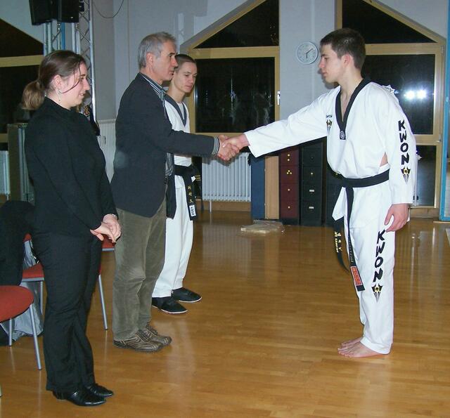 Am Samstag haben drei Schwarzgurte der Kampfsportgemeinschaft Kocaman den 2. Dan in Taekwon-Do erfolgreich bestanden. Somit machten sie sich das schönste Weihnachtsgeschenk. Der in Meitingen trainierende Marco Cavaliere, Jessica Rötzer und Fabian Ernst aus Rain unterzogen sich in Meitingen einer strengen drei Stunden dauernden Prüfung in Taekwon-Do. Die Prüflinge mussten einige Kombinationen, Formen (Hyongs), Selbstvertedigung, Einsteppsparing, Freikampf, Bruchtest und theoretisches Können nachweisen. Vom 1. Dan auf den 2. Dan mussten sich die Sportler zwei Jahre vorbereiten und trainieren. Die Prüfungskommision, bestehend aus den Prüfern Grossmeister Kocaman Ali 7. Dan Taekwon- Do, sowie die Nebenprüfer Bastian Weber 3. Dan und Viktoria Volkova 2. Dan waren mit den gezeigten Leistung vollkommen zufrieden.