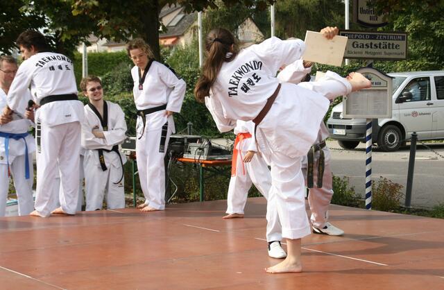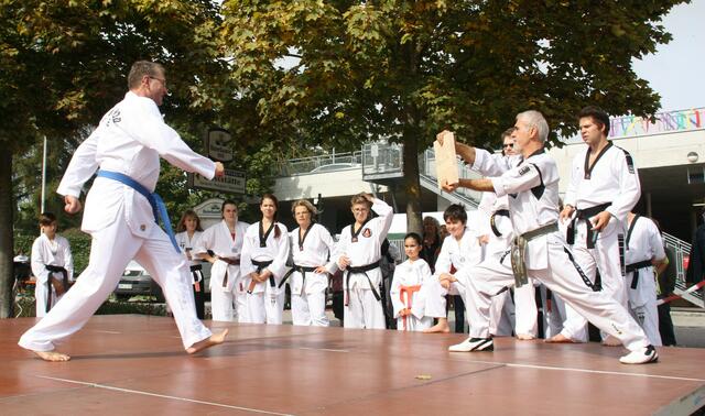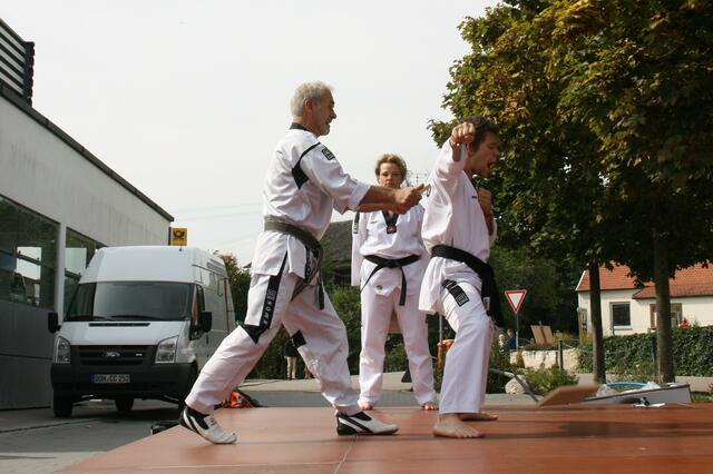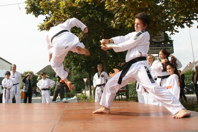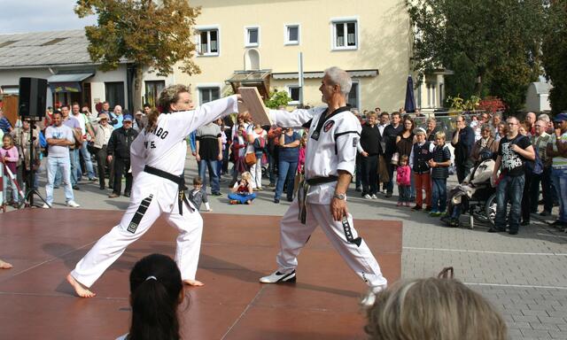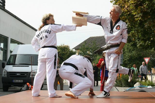 Auch dieses Jahr folgte die Kampfsportgemeinschaft Kocaman der Einladung der Stiftung St. Johannes zum alljährlichen Herbstfest in Schweinspoint. Die Sportler aus Rain, Meitingen und Nördlingen begeisterten die Besucher mit 2 Auftritten von je einer halben Stunde. Unter Großmeister Ali´s Komando liefen wir Formen aus dem Taekwon-Do (Hyongs). Ebenso führten wir effektive Selbstverteidigungstechniken aus dem Allkampf-Jitsu vor, sowie Kämpfe in Kickboxen und spektakuläre Bruchtests. Zahlreiche Zuschauer bestaunten Großmeister Kocaman Ali´s Innenhandkanten-Bruchtest, bei dem zwei 3 cm dicke Bretter mit einer Hand gehalten wurden.
