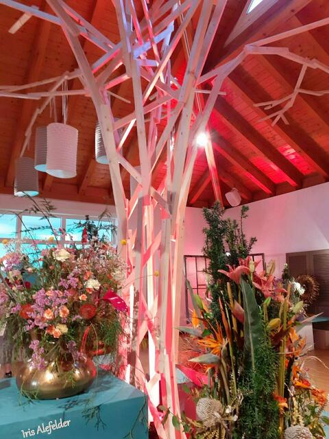 Die Blumenschau wurde am Dienstag 17. Mai von Blumenpatin Aglaja von Rumohr (Seniorchefin Staudengärtnerei Gräfin von Zeppelin) und LGS-Geschäftsführerin Andrea Leisinger eröffnet und zeigt einmal mehr floristische Kunstwerke aus Meisterhand, diesmal unter Federführung von Floristmeister Florian Mayer ins Szene gesetzt.