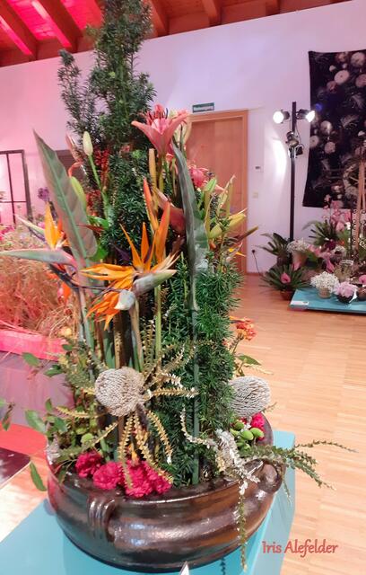 Noch bis Sonntag, 29.5. ist die dritte von zwölf Blumenschauen unter dem Motto "Ab in den Süden - vom süßen Nichtstun" im Haus der Floristik zu sehen.