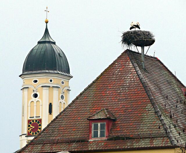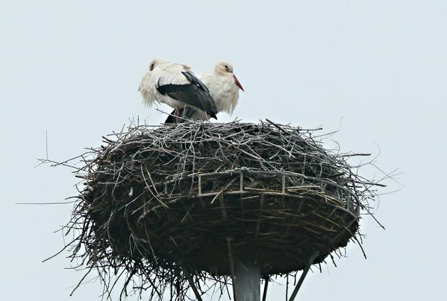 ... frösteln auch die Störche auf der Batzenhofener Mühle noch ein bißchen und kuscheln sich eng aneinander. Aber mit solchen Temperaturen kommen sie noch gut zurecht und wenig später treffe ich sie in einer Wiese bei der Futtersuche.