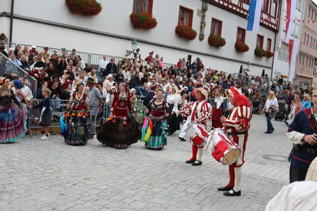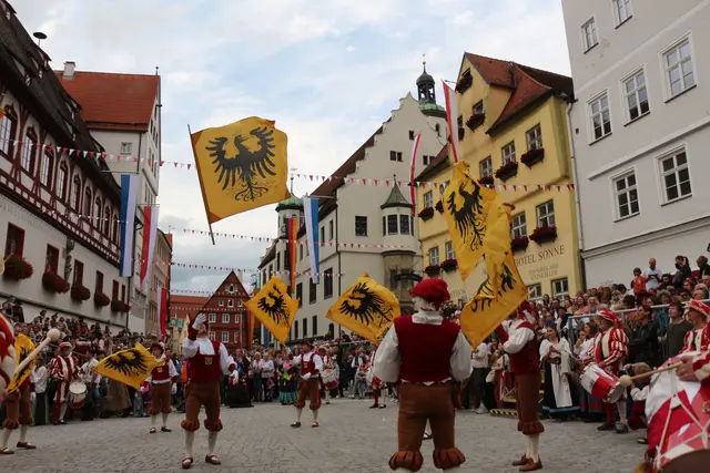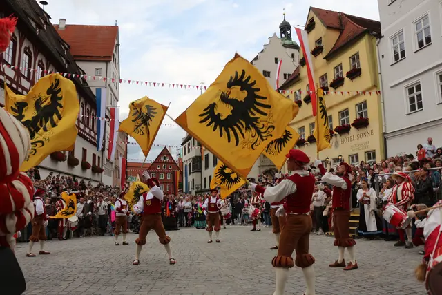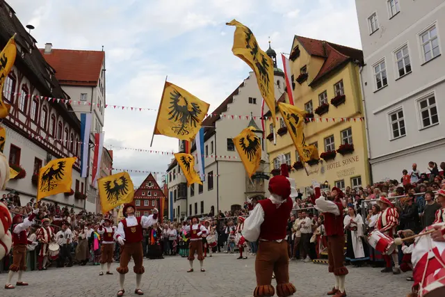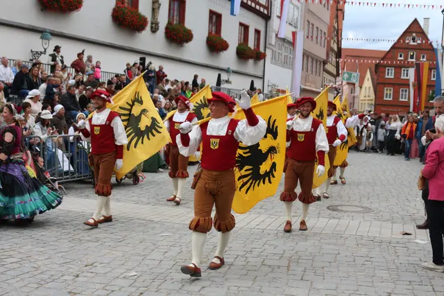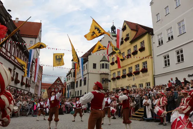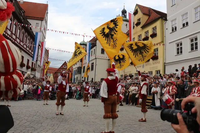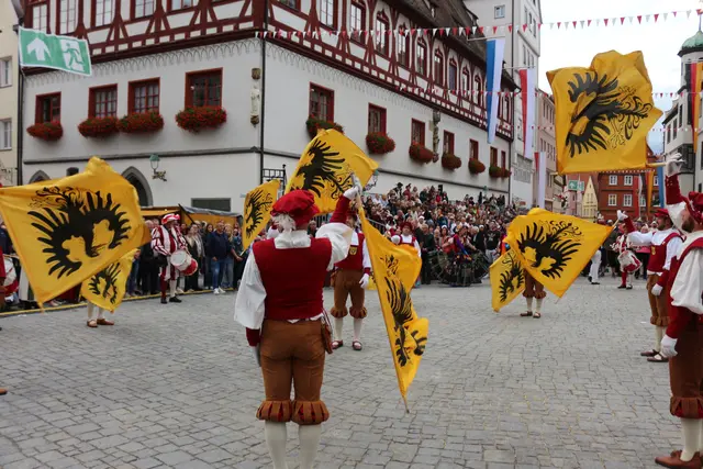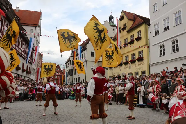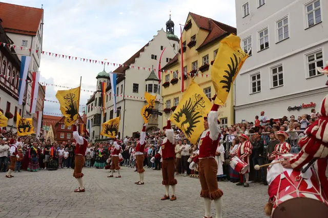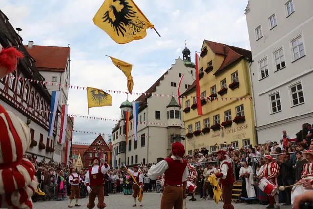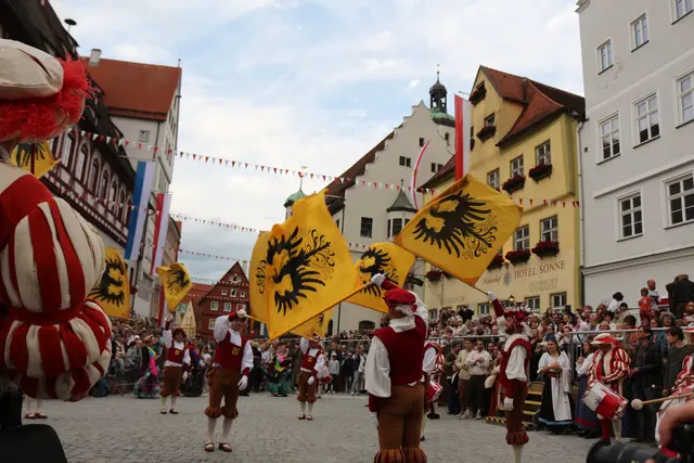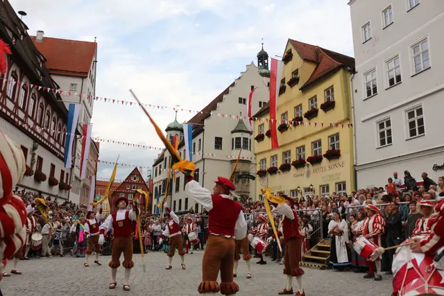 Bei unserem Tagesausflug am Samstag den 13. September, zur Stadtmauerfest nach Nördlingen haben wir am Abend 18.30 Uhr Auftritt der Nördlinger Fahnenschwinger angeschaut. Die Fahnenschwinger der Stadt Nördlingen sind ein wichtiger Bestandteil des Historischen Stadtmauerfestes und treten dort immer wieder auf. Die Nördlinger Fahnenschwinger sind ein fester Bestandteil des Historischen Stadtmauerfestes. Sie sorgen mit ihren Darbietungen für super Unterhaltung. Begleitet wurden die Fahnenschwinger vom Trommler und Bauchtänzerinnen.
